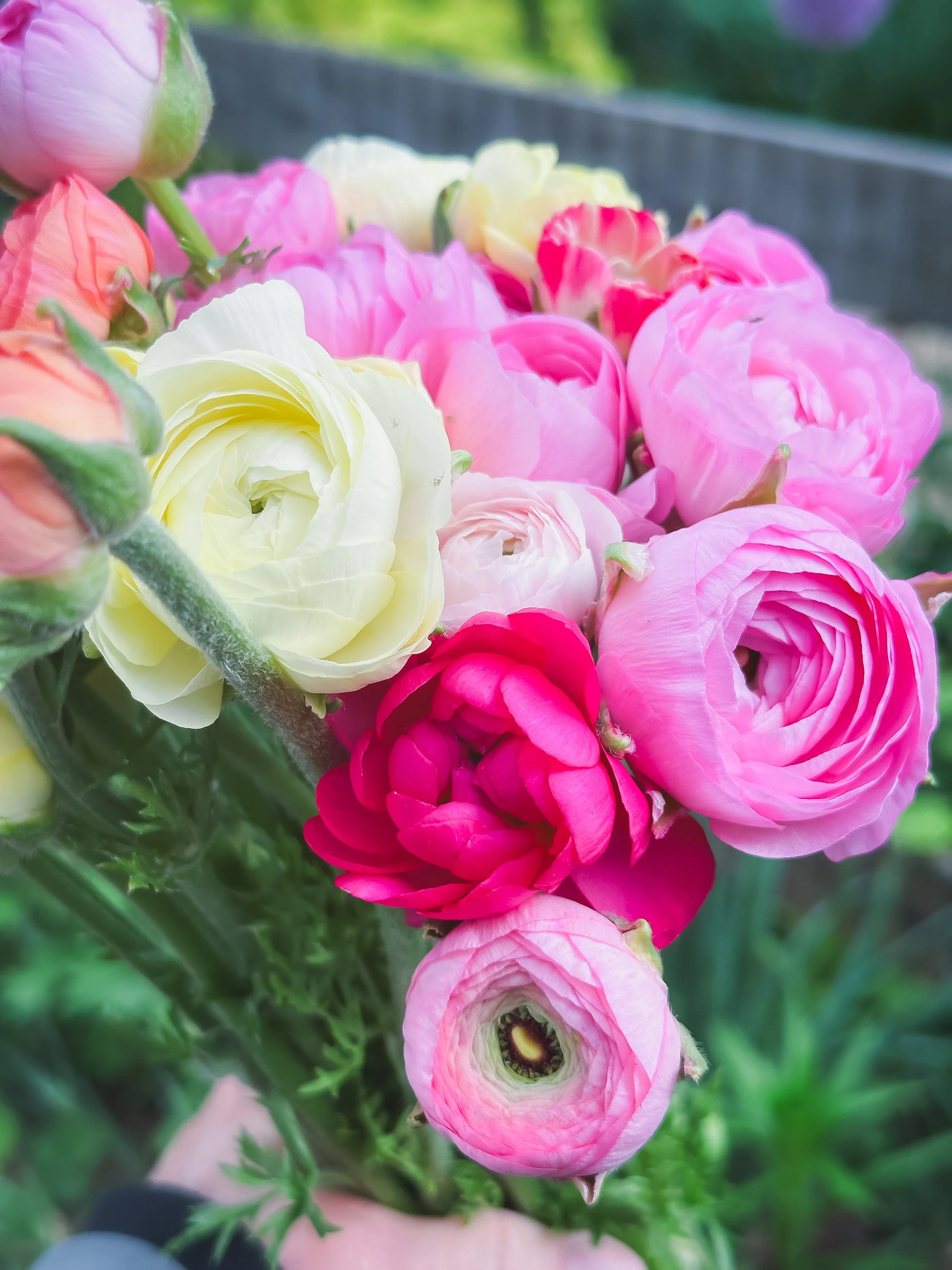 Ranunculus are lush, colorful, and oh so romantic, with densely packed petals that look like thin crepe paper tissue, spiraling around to form beautifully full rosette like shapes. Ranunculus need some extra attention but are so worth the work in the end , and are some of my favorite flowers to see in the Spring! Just like the Lisianthus in the Summer, I think ranunculus have such a huge fan base because their form looks so similar to a rose. I have grown ranunculus from corms for many years now and tried to increase their dedicated space each season, as well as play around with timing , leaving in, starting new, etc. Attempting to get the very best production here is zone 6 Ohio for cut flowers.