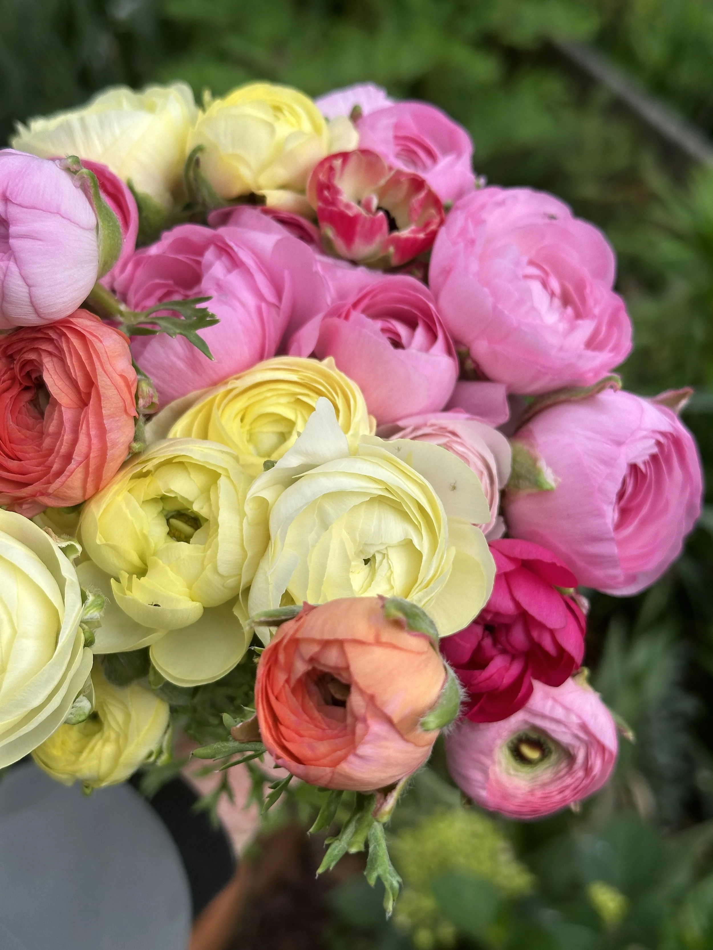 Next up in our early Spring blooms come the mid/late blooming tulips. We focus most of our efforts on the double flowering varieties that are not often available in stores. Ranunculus , alliums, avens, Astrantia, Canterbury Bells , and depending on the season, peonies, usually decide to join in during this time of early Spring . Many of these varieties are completely gone by the time the market opens in late May.